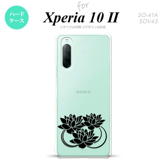Xperia10 II スマホケース 背面カバー ストラップホール有 ハードケース 蓮 クリア 黒