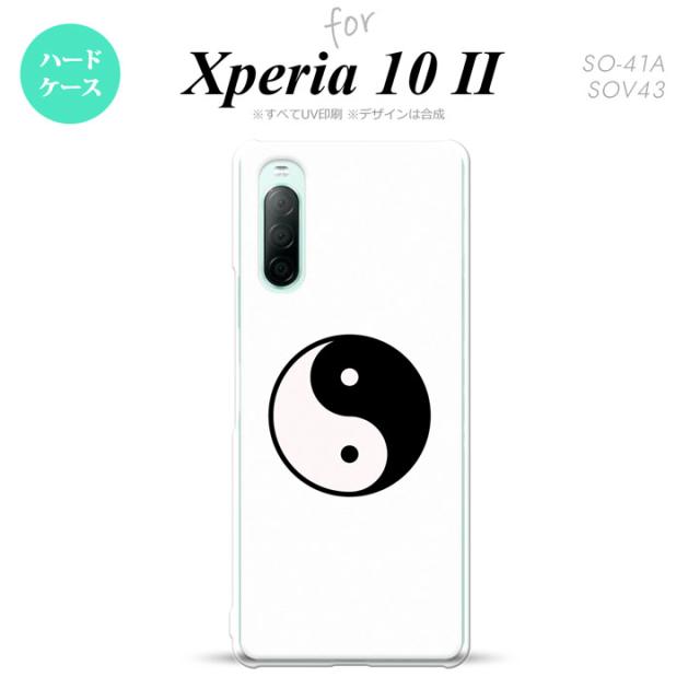 Xperia10 II スマホケース 背面カバー ストラップホール有 ハードケース 陰陽 白
