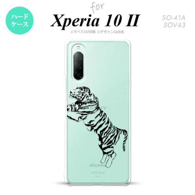 Xperia10 II スマホケース 背面カバー ストラップホール有 ハードケース 虎 クリア 黒