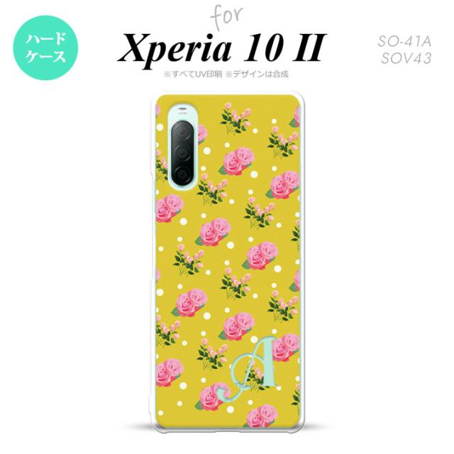 Xperia10 II スマホケース 背面カバー ストラップホール有 ハードケース 花柄 バラ ドット 黄 +イニシャル nk-xp102-242i