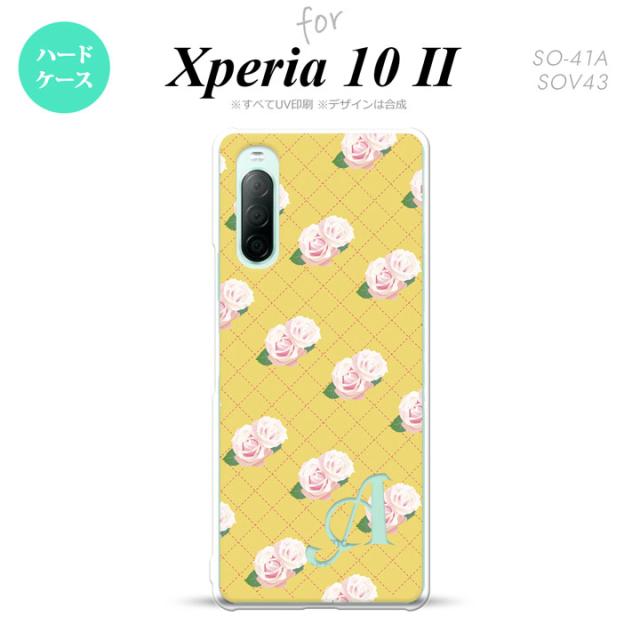 Xperia10 II スマホケース 背面カバー ストラップホール有 ハードケース 花柄 バラ 編み 黄 +イニシャル nk-xp102-265i