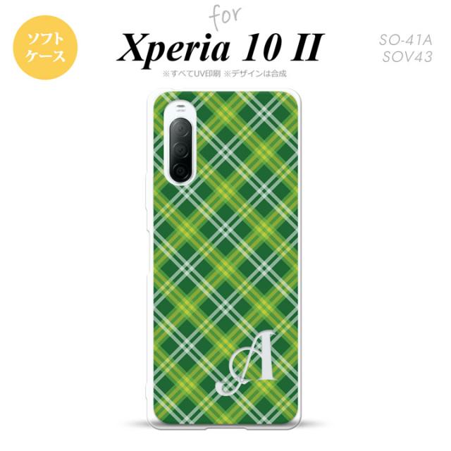 Xperia10 II スマホケース 背面カバー ストラップホール有 ソフトケース チェック A 緑 +イニシャル nk-xp102-tp435i