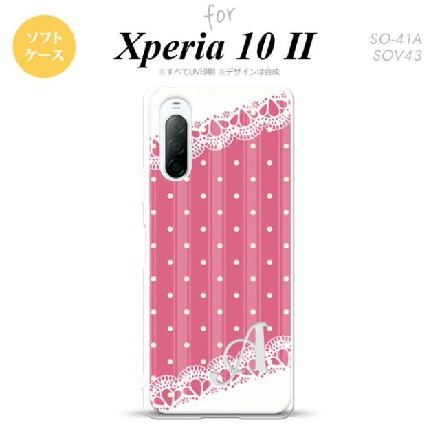Xperia10 II スマホケース 背面カバー ストラップホール有 ソフトケース ドット レース C ピンク +イニシャル nk-xp102-tp1611i