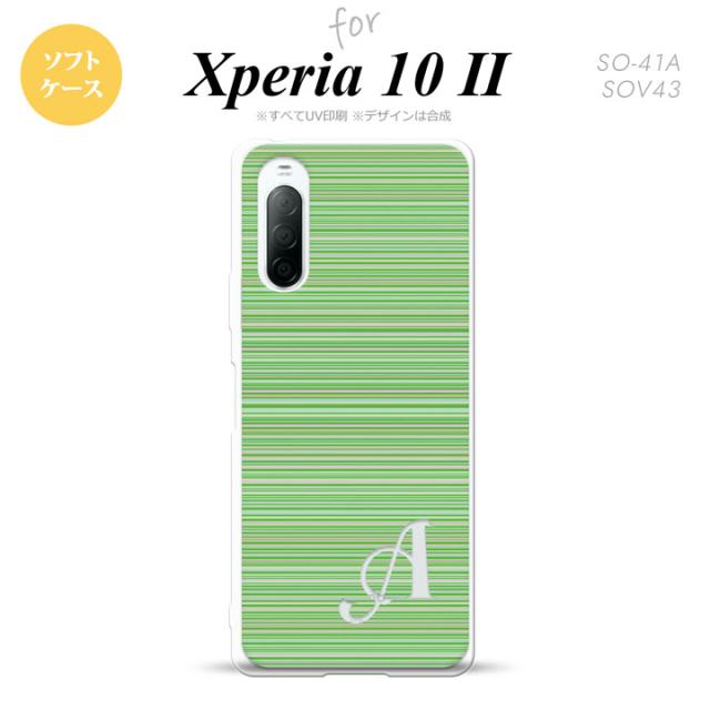 Xperia10 II スマホケース 背面カバー ストラップホール有 ソフトケース ボーダー 細 緑 +イニシャル nk-xp102-tp1290i