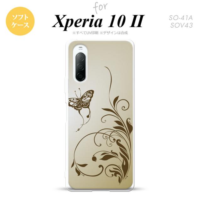 Xperia10 II スマホケース 背面カバー ストラップホール有 ソフトケース 蝶と草 ゴールド風 nk-xp102-tp1635