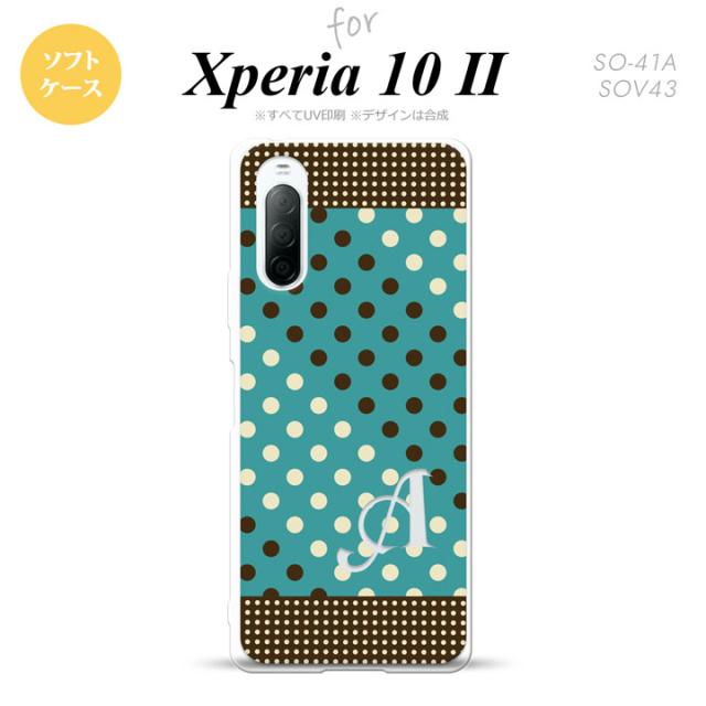 Xperia10 II スマホケース 背面カバー ストラップホール有 ソフトケース ドット 水玉 C 青緑 茶 +イニシャル nk-xp102-tp1654i