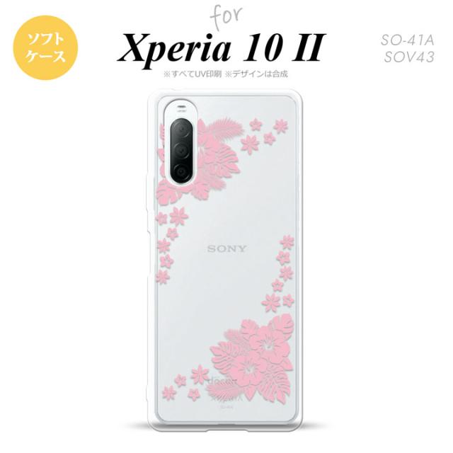 Xperia10 II スマホケース 背面カバー ストラップホール有 ソフトケース ハイビスカス E クリア ピンク