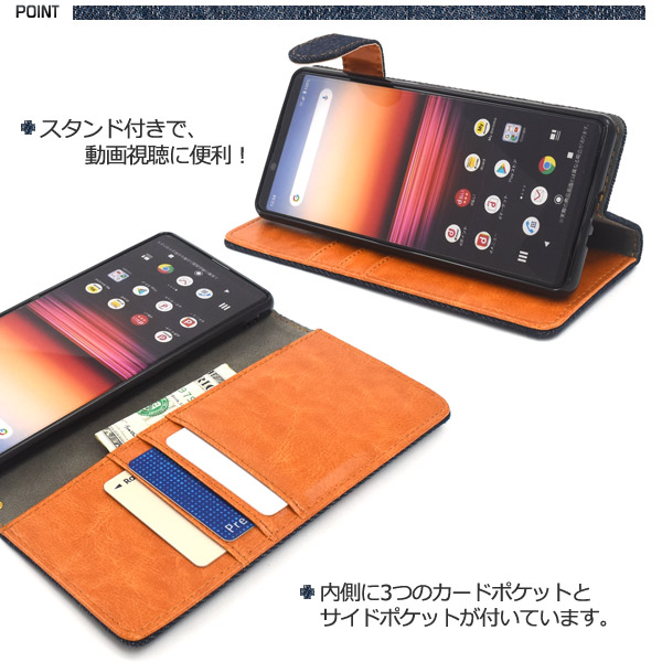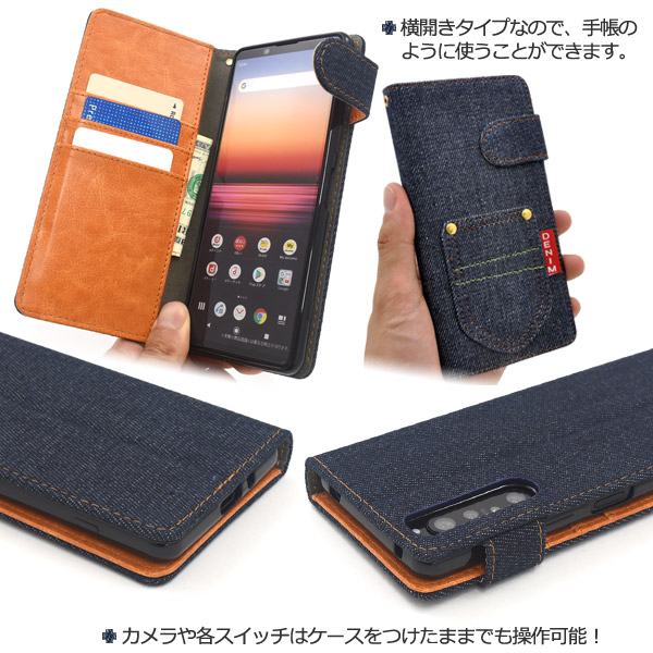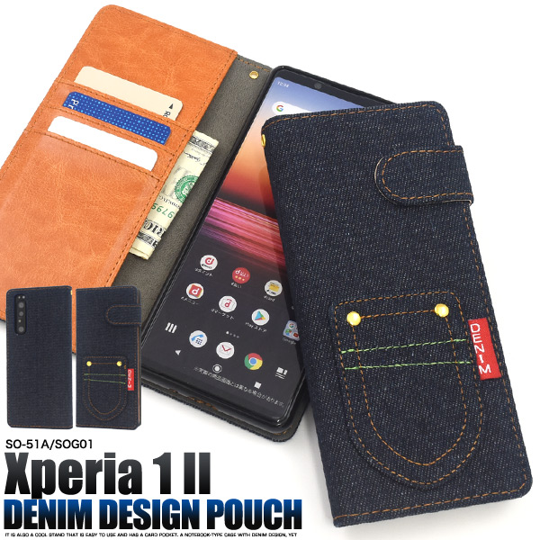 スマートフォンケース Xperia 1 II SO-51A SOG01用 手帳型 デニムケース 携帯ケース ポケット付き デニム 装着簡単 スマホケース お洒落 シンプル カジュアル 横開き オシャレ スマホカバー おしゃれ 保護カバー レディ ガーリー auスマホ denimケース denim オトナ女子