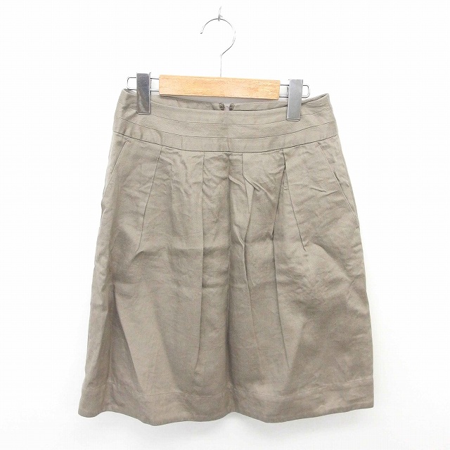 【中古】スピック&スパン Spick&Span スカート タイト ひざ丈 バックジップ 無地 麻 リネン 36 薄茶 ベージュ