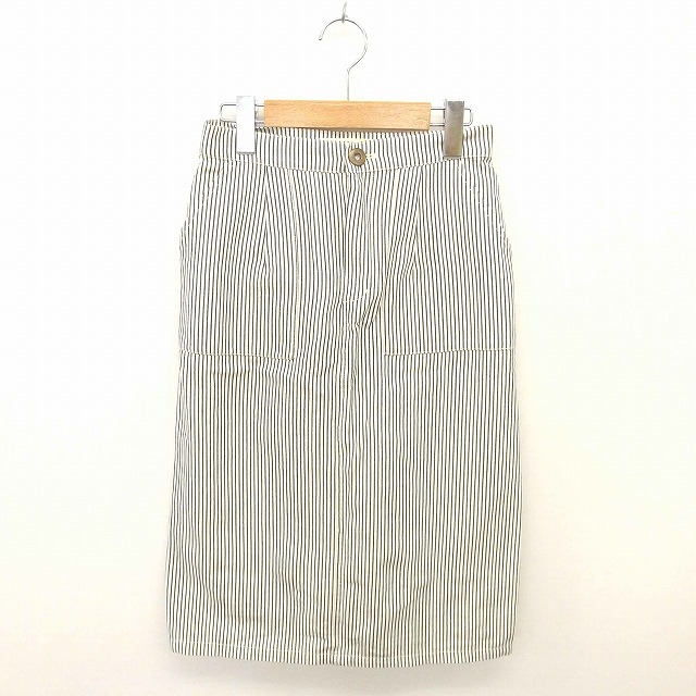 【中古】レイビームス スカート タイト ミモレ丈 ロング ストライプ チュール 綿 0 薄茶 紺 ライトベージュ ネイビー