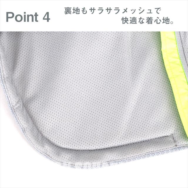 通気性の良いメッシュ素材と給水スポンジに水を含ませる事で日差しの強い日には気化熱冷却効果が期待できます。