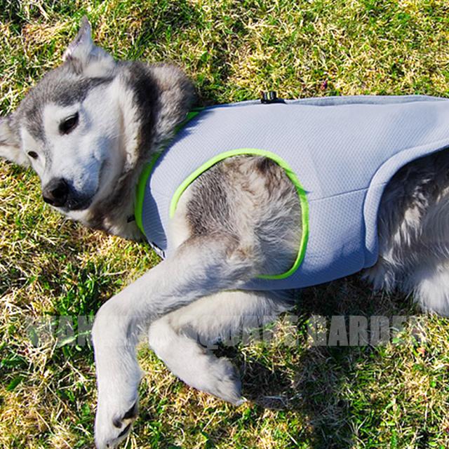 ※曇りの日や、湿度の高い日には着用しない。もしくは【冷水】をこまめにベストの上からかけてあげてください。