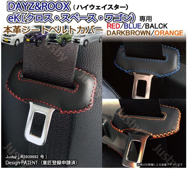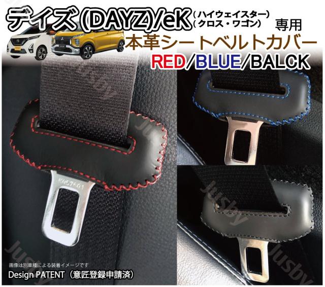 新型 デイズ DAYZ & eK ワゴン/ eKクロス 専用 本革 シートベルトカバー (赤or青or黒) 傷防止 異音防止 ドレスアップ 本皮レザーカバー パーツ アクセサリー