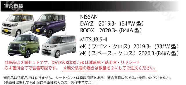 当商品は2個セットです。デイズ&eKは運転席・助手席・リヤシート×2 すべて装着可能です。4席分必要な場合は数量を2個にしてご注文をお願い致します。