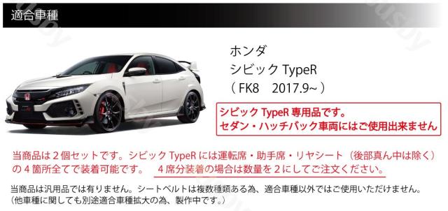 当商品は2個セットです。シビックTypeRは運転席&助手席&リヤシート左右(真ん中不可)全てに装着可能です。