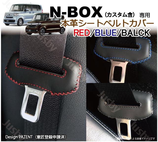 ホンダ N-BOX JF3 JF4 専用 本革シートベルトカバー レザーカバー 赤 青 黒 ステッチ ドレスアップ 異音&傷防止 パーツ アクセサリー 本皮 カスタム NBOX