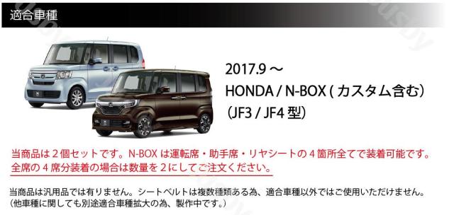 N-BOXは[運転席&助手席] & [リヤシート×2] すべて装着可能です。4席分必要な場合は数量を2個にしてご注文をお願い致します。