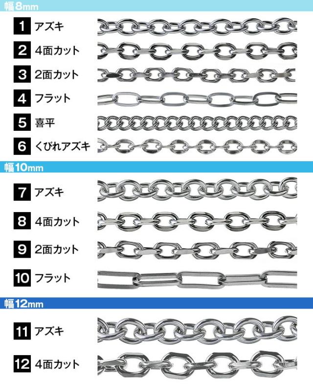 8mm幅/アズキ 4面カット 2面カット フラット 喜平 くびれアズキ