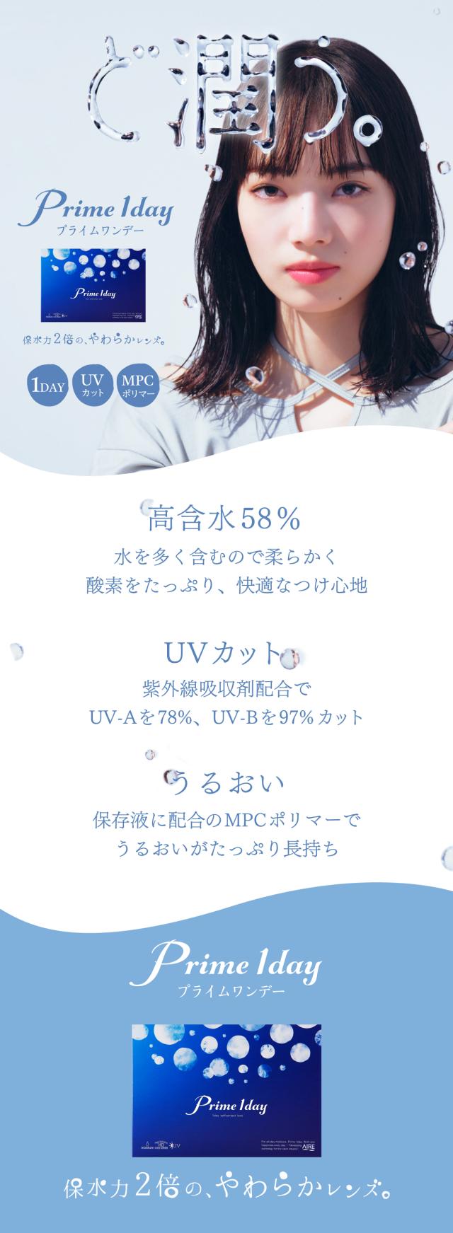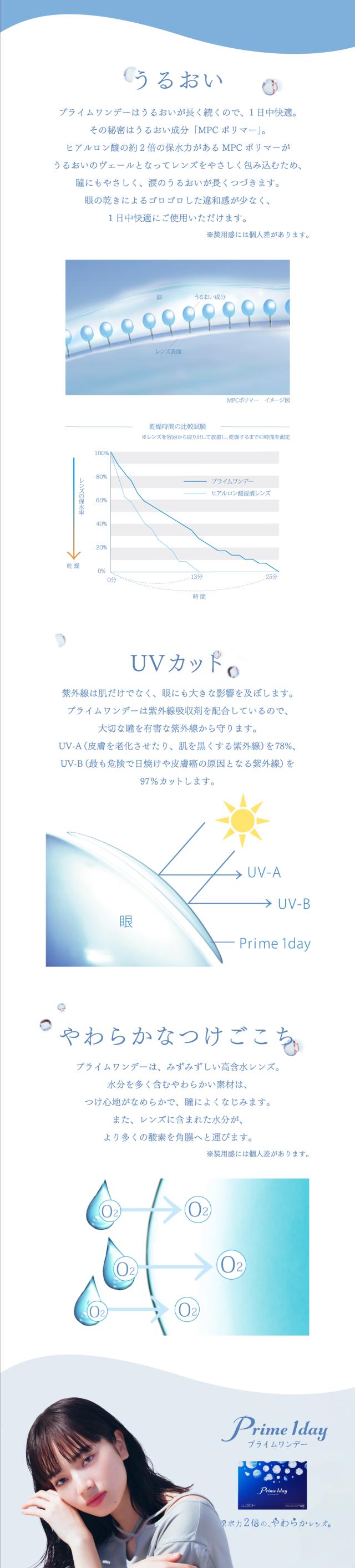 プライムワンデーはUV吸収剤を配合しているので、瞳を紫外線からしっかり守ります。