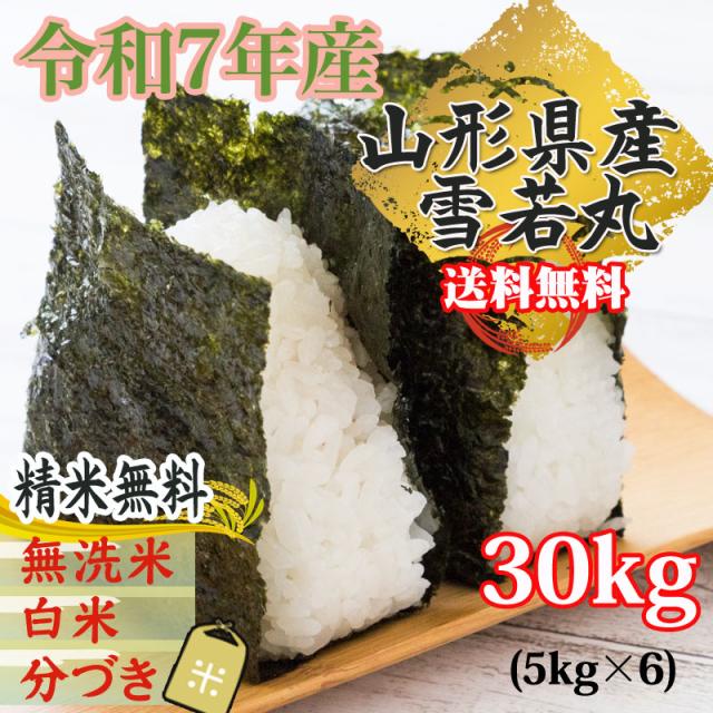 米 玄米 30kg 雪若丸 5kg×6袋 令和7年産 山形県産 精米無料 白米 無洗米 分づき 当日精米 送料無料
