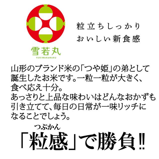 平成30年度産より全国的に本格デビューした「雪若丸」。大粒にしてあっさりした「粒感」を持ち、今までにない「新食感」を提供する。山形のブランド米「つや姫」の弟というポジションで登場。まだ生産農家が限定されているということもあり、数量限定で販売です。この機会に是非ご賞味ください。