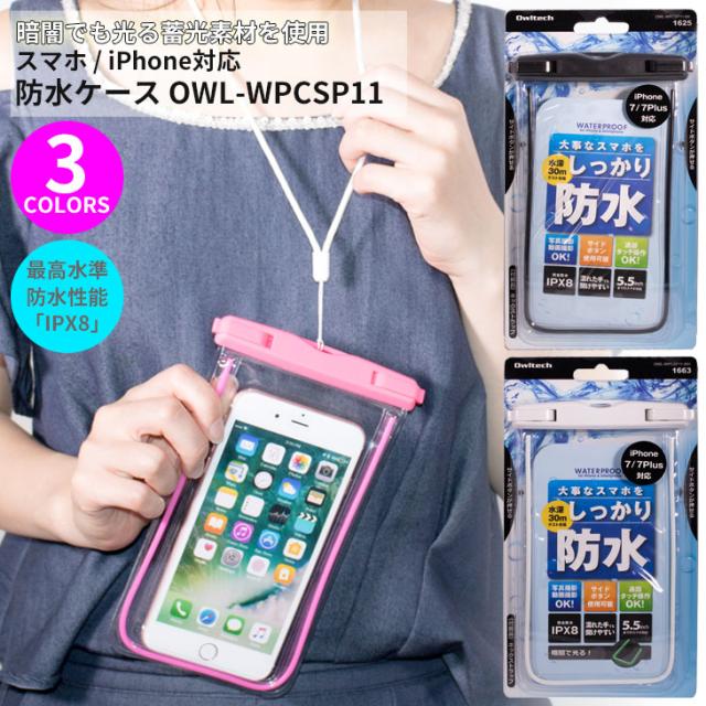 Owltech オウルテック OWL-WPCSP11 携帯スマートフォン 防水ケース 防水ソフトケース 暗闇でも光る蓄光素材 Waterproof iPhone アイフォン GALAXY ギャラクシー 携帯電話/スマホ