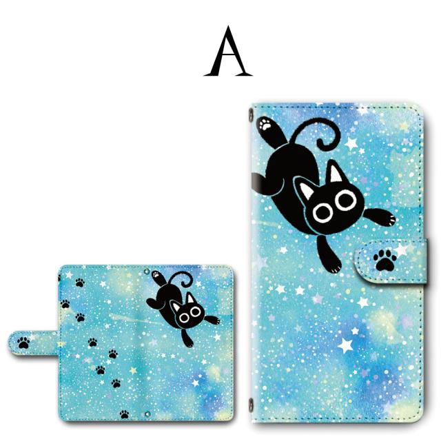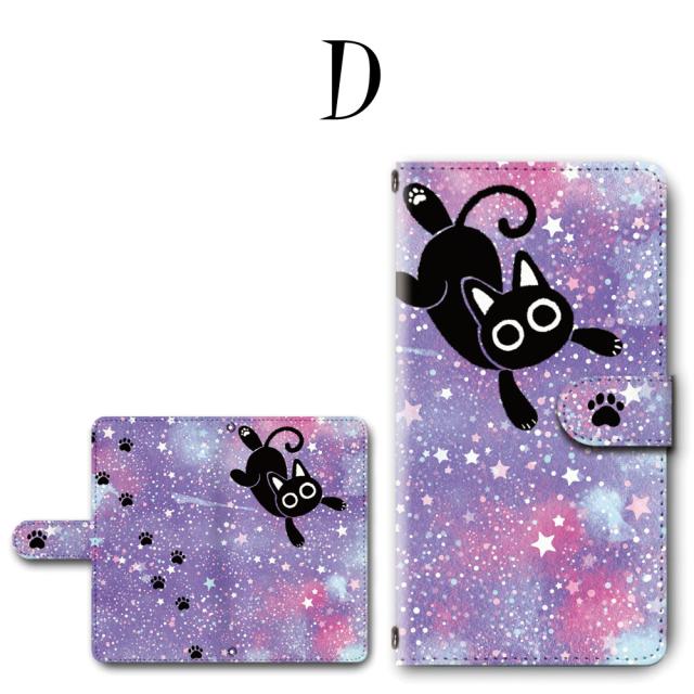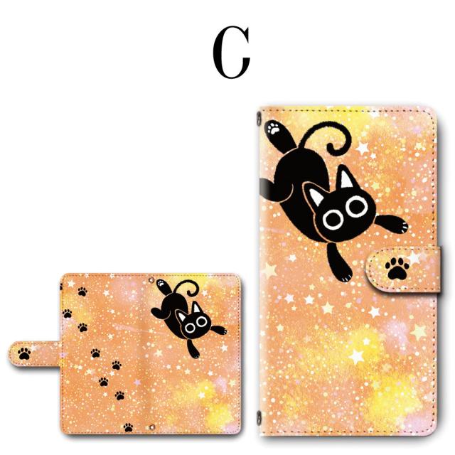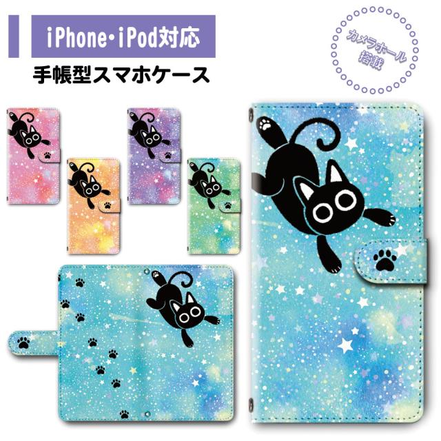 スマホ ケース カバー 手帳型 iPhone iPod iPhone11 iPhoneSE アイフォン 送料無料 猫 黒猫 キャラクター ゆめかわいい 星空 足あと / dc-753