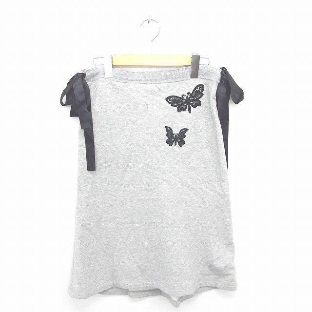 【中古】ケイタ Keita スカート タイト ミモレ丈 ロング リボン 刺繍 蝶柄 綿 コットン 1 グレー 灰 /TT4 レディース