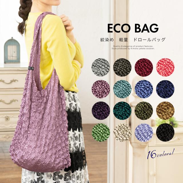エコバッグ コンパクト 軽量 おしゃれ 絞り 無地 カラフル ショッピングバッグ レディース 女性 洗える メール便