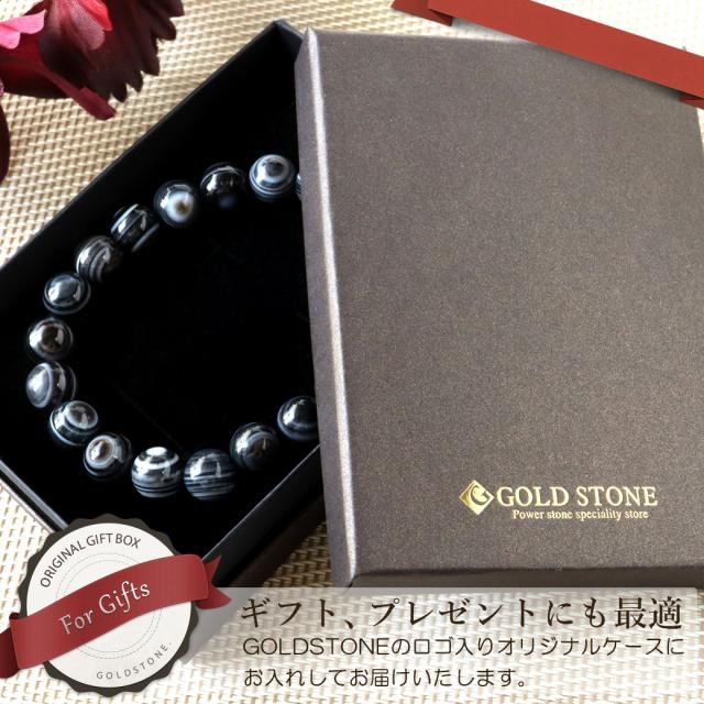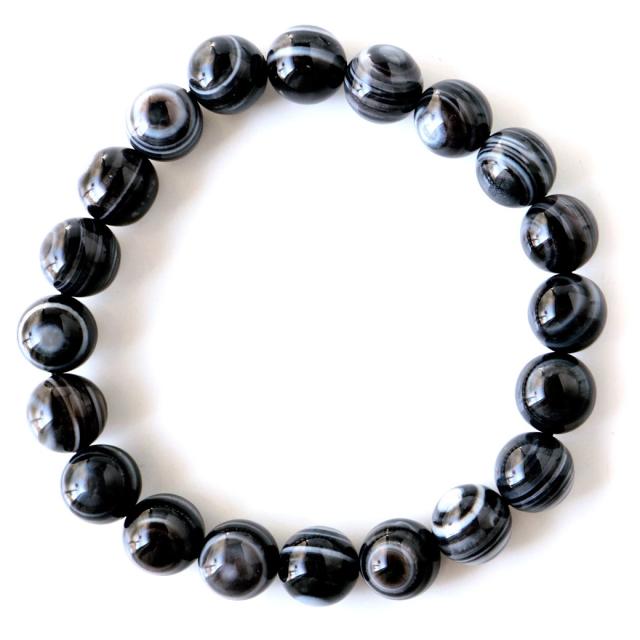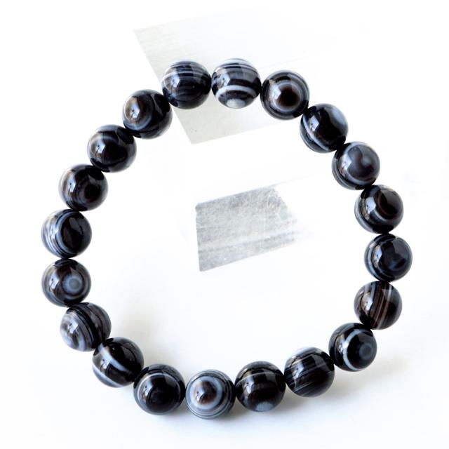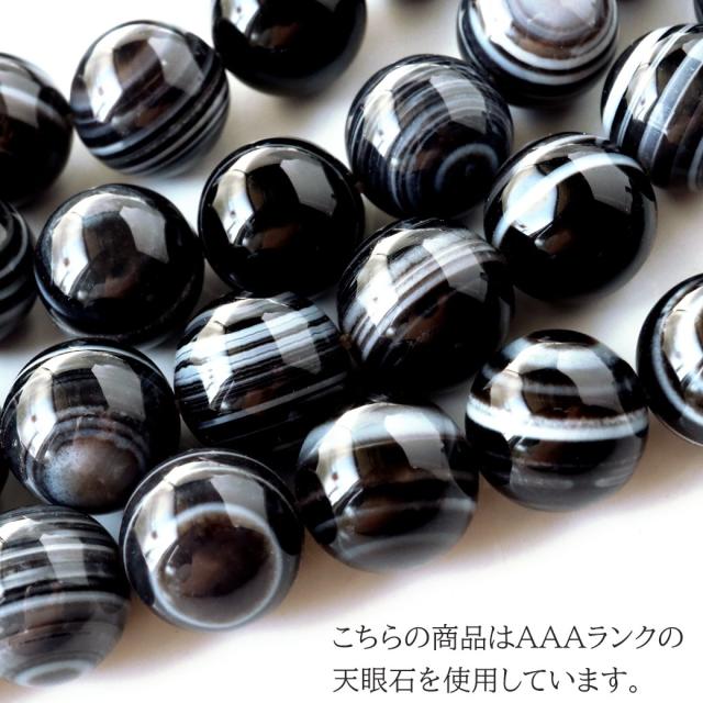 天眼石は、瑪瑙(めのう)の一種で、黒、白、茶、灰色の縞模様が特徴の天然石です。