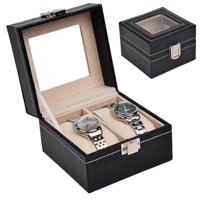 時計ディスプレイケース(2本用 ブラック) 高級 レザー ベルベット 革 皮 ディスプレイボックス ガラス コレクションボックス 女性 レディース 父の日 プレゼント ギフト ブレスレット バングル 展示用 贈り物 店舗用 業務用 収納 ショーケース ギフトボックス 撮影用