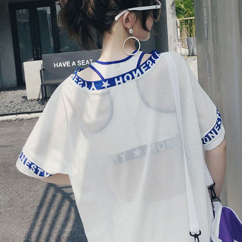 ラッシュガードはゆったりしていて、身体のラインが透けて見えるので細見えします。大人っぽい小物とのコーデがセクシーに見えます。