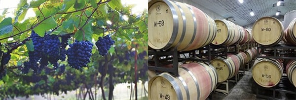 高品質のぶどうを良さを真面目に引き出すことを最大の目標に製造しております。高級赤ワインにはフランス産樽を使用し深みのある味わい、風味豊かな香りを追求して醸造しております。白ワイン・ロゼワイン・ブラッシュはきれいな果汁で低温発酵することでフレッシュでフルーティなワイン造りをしております。