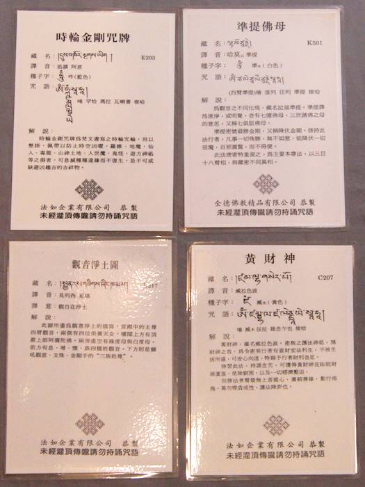 時輪金剛咒牌、黄財神、観音土圖、準提佛母