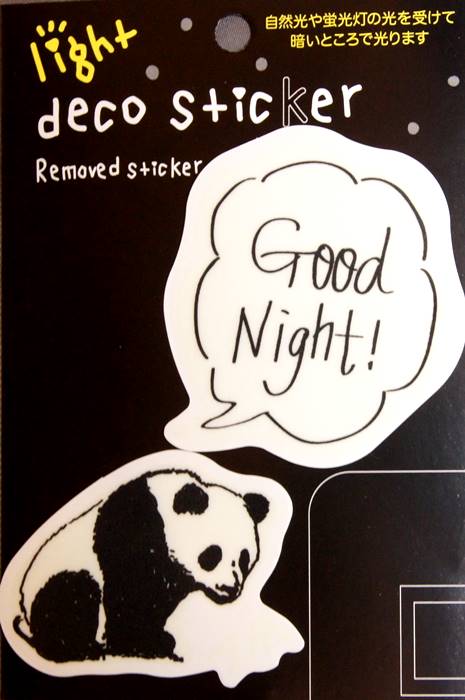 電気を消すと、暗闇にパンダが光ます。暗い部屋のスイッチ部分に貼ると便利ですよ!
