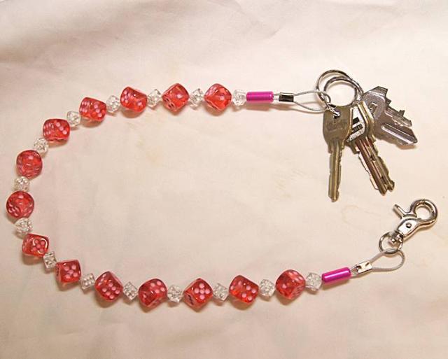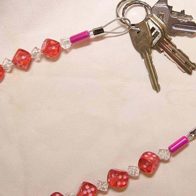 サイコロ/ダイス ウォレットチェーン 透明白&赤 60cm