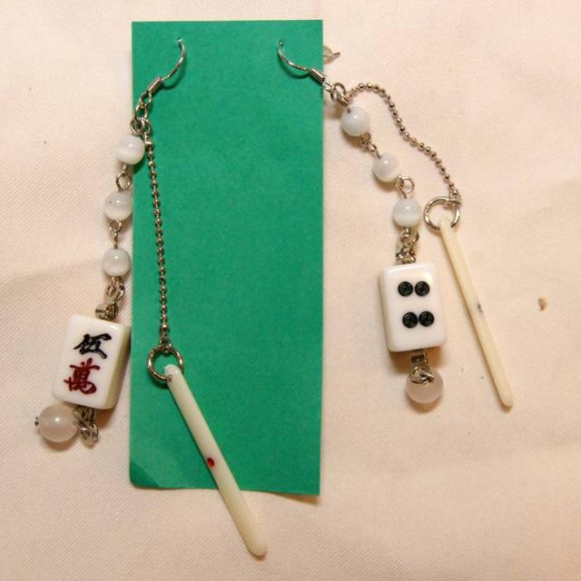 麻雀牌と点棒が耳のところで揺れて、個性的でかわいいです!