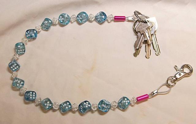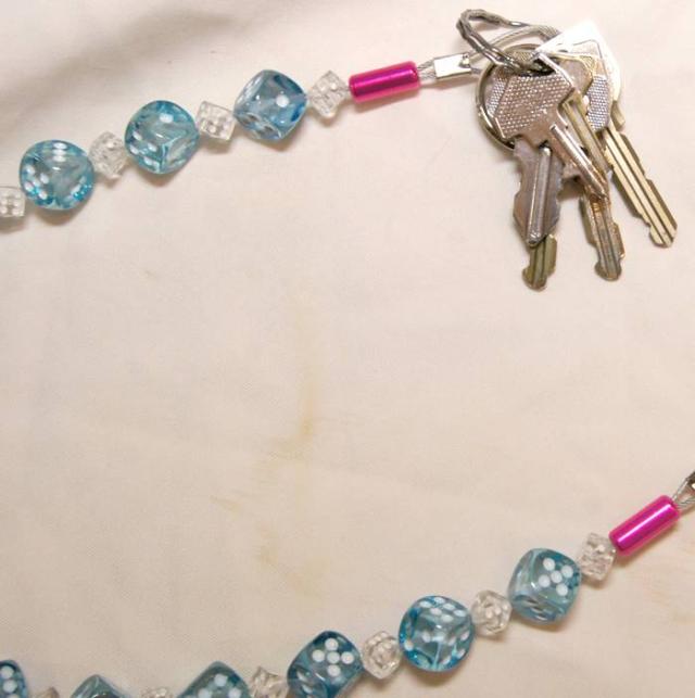 サイコロ/ダイス ウォレットチェーン 透明白&水色 60cm