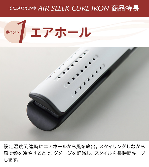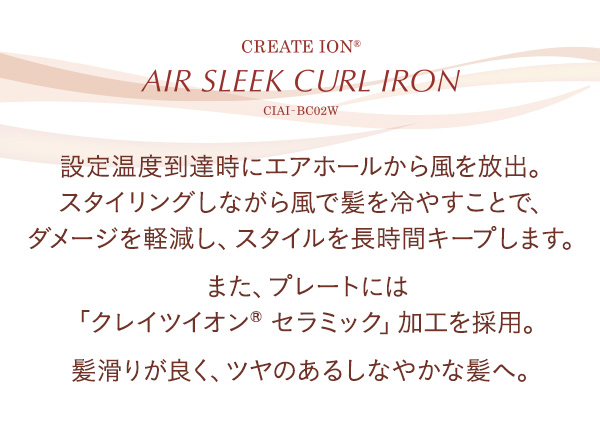 エアスリーク カールアイロン CIAI-BC02W クレイツイオン 送風機能付き ヘアアイロン ヘアーアイロン カーリングアイロン CREATE ION