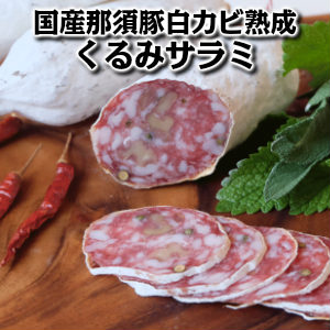 新鮮な那須豚にくるみを入れて白カビで熟成させたサラミ ワインと一緒に 白カビ熟成乾燥ソーセージ サラミ お酒の友 ワインと相性抜群!! 手土産 手みやげ父の日 敬老の日