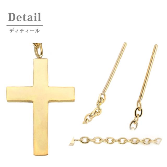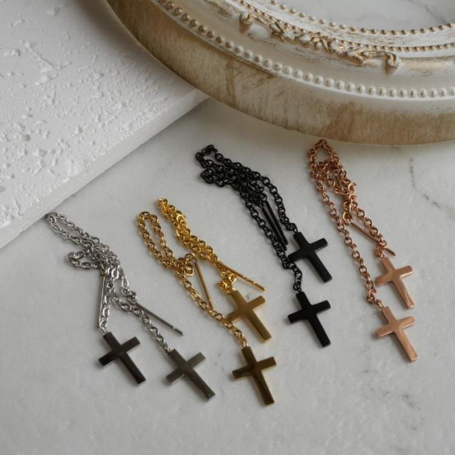 シンプルなクロスモチーフと華奢なチェーンが耳元で揺れて女性らしさが出ます。