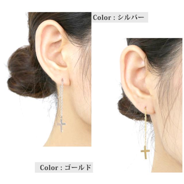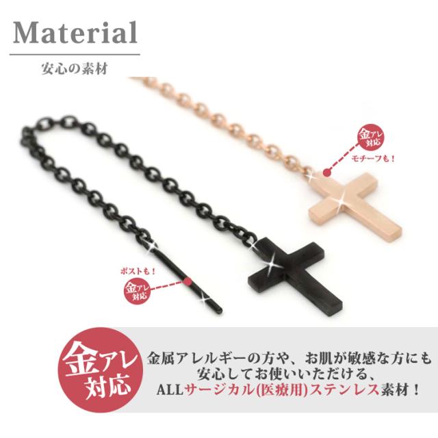 金属アレルギー対応 ステンレスピアス クロスチェーンピアス アメリカンピアス アメリカンピアス 両耳用 316L サージカルステンレス