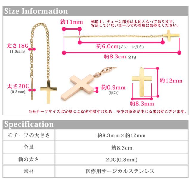 □軸の太さ:ポスト部分 20G(0.8mm)・チェーン部分 18G(1.0mm) □全長:約83mm