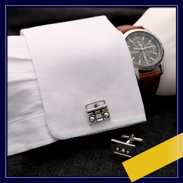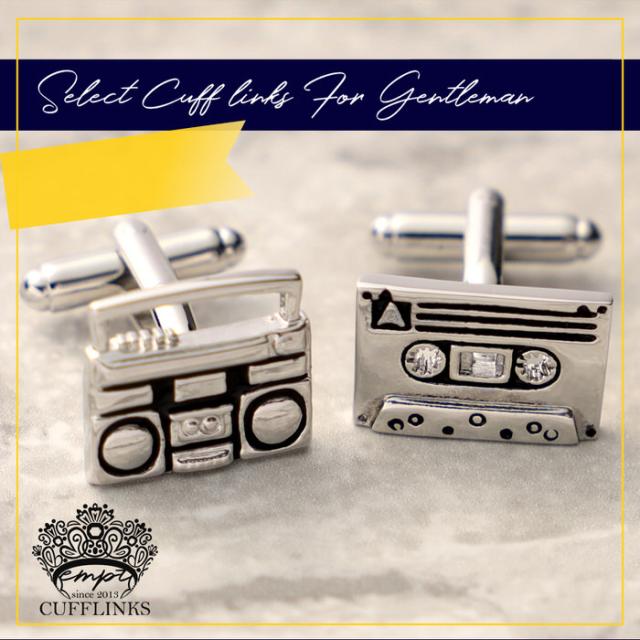 カセットテープ カセットデッキ 音楽 機械 モチーフ カフス シルバー 銀 | カフリンクス カフスリンクス カフス カフスボタン 趣味 メンズ 男 結婚式 誕生日 使い方