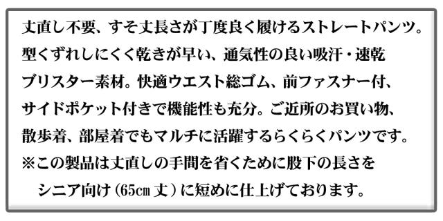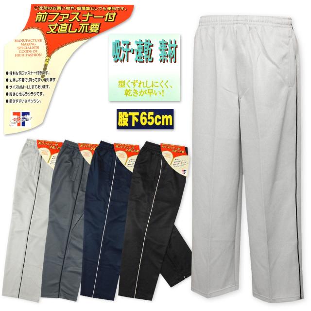 【送料無料】紳士 メンズ 丈直し不要 股下65cm ストレート パンツ ジャージ 吸汗速乾 通気性 ブリスター 前ファスナー付き シニア向け M L LL yg-0088【メール便対応】