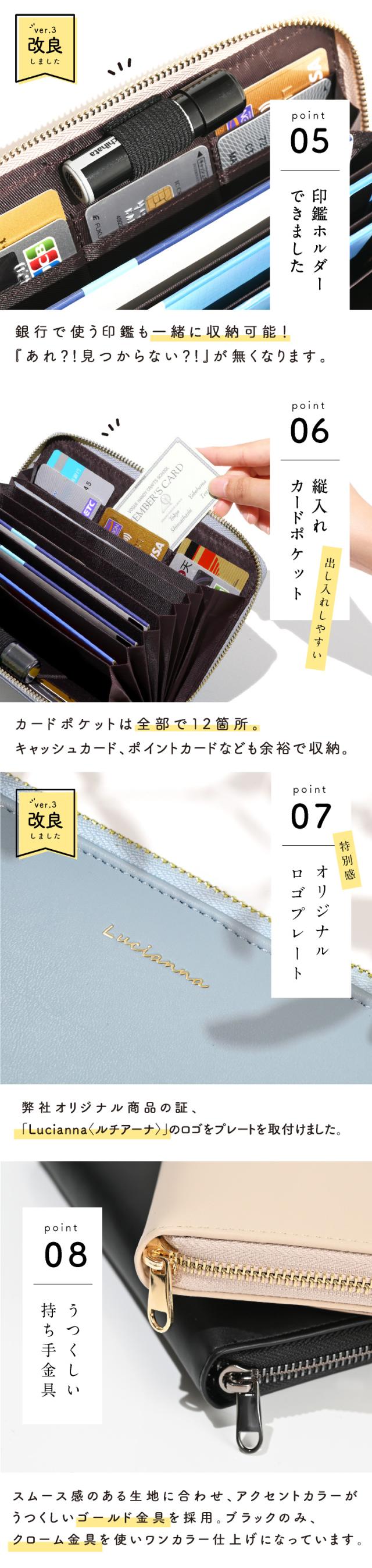 - 私は、通帳4冊・お薬手帳・年金手帳・方型ポチ袋はちょっと無理矢理に入れてますが厚くなりません。ファスナーがスムーズに動き とても良いです。方型ポチ袋の専用では無いけど…もうちょっとだけ横幅が欲しいです。