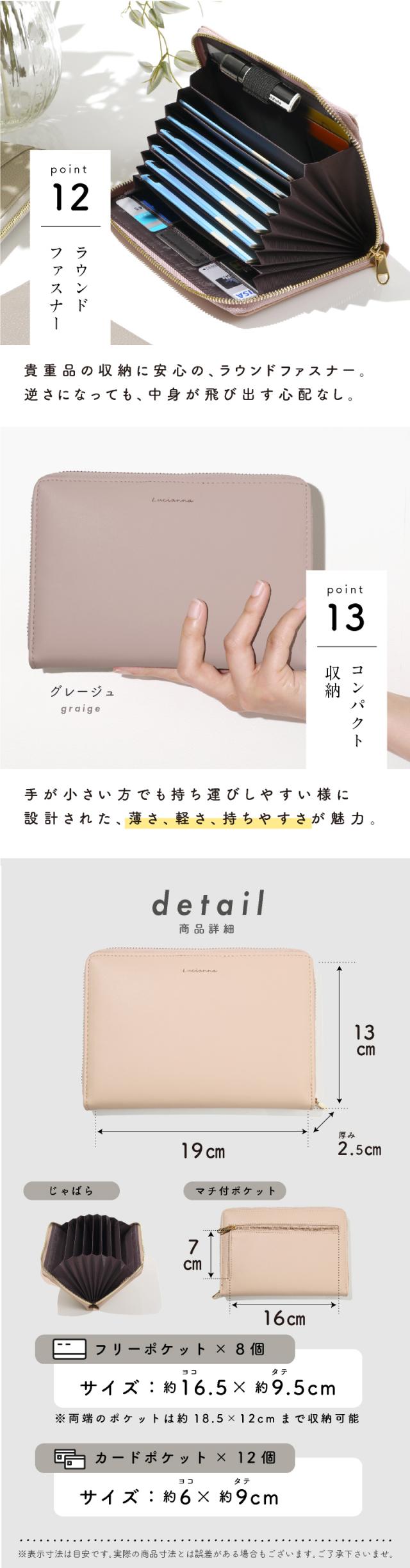 貴重品の収納に安心の、ラウンドファスナー。