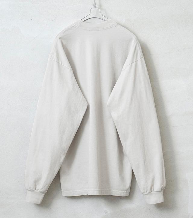 生地には耐久性・吸収力に優れ、肌触りも良い100%アメリカ製コットンを使用。ミディアムウェイトな6.5ozの程よい厚みはレイヤードスタイルにはもちろん、一枚での着用にもオススメです。GARMENT DYEを施し、天然の酵素で洗浄しているので洗濯を繰り返してもへたることなく、長く着用いただけるよう仕上げています。トレンド感のあるゆるめのシルエットに、クルーネックのネックラインをやや高めにとったデザイン。