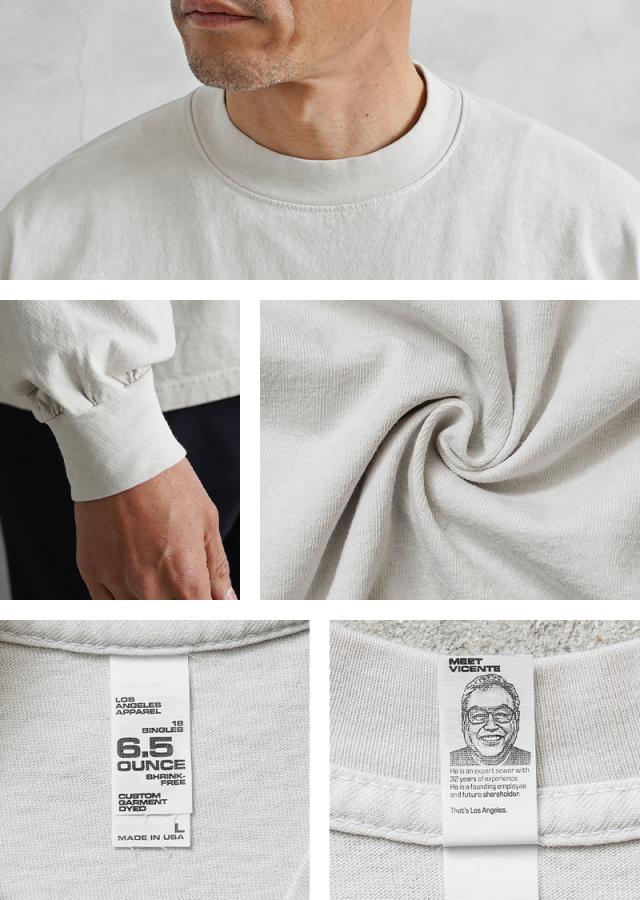 LOS ANGELES APPAREL ロサンゼルスアパレル 1807GD 6.5オンス ガーメントダイ 長袖 クルーネックTシャツ MADE IN USA【T】| メンズ トップス カットソー くすみカラー 無地 厚手 ブランド 大きいサイズ アメリカ製