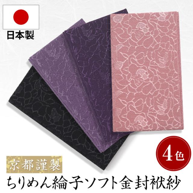 [ふくさ 袱紗 日本製 慶弔両用 慶事 弔事 結婚式 葬儀 法事 法要 通夜 祝儀袋 御祝 内祝 香典 冠婚葬祭 金封袱紗 金封ふくさ かわいい おしゃれ ちりめん 綸子 ソフト 京都 箱付 箱入り 男性用 女性用 紫 ピンク パープル ブラック 黒 FU655 ゆうパケット対応]